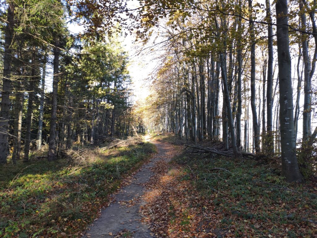 Jako, że schronisko odwiedzamy poza sezonem wysokim, do tego – w środku tygodnia, nie spotykamy tam zbyt wielu turystów. Dzięki temu łapiemy chwilę potrzebnego oddechu. Po wypiciu i zjedzeniu czegoś ciepłego (polecam pierogi!) wracamy na szlak czerwony. Podążamy wzdłuż tego szlaku aż do schroniska Przegibek.