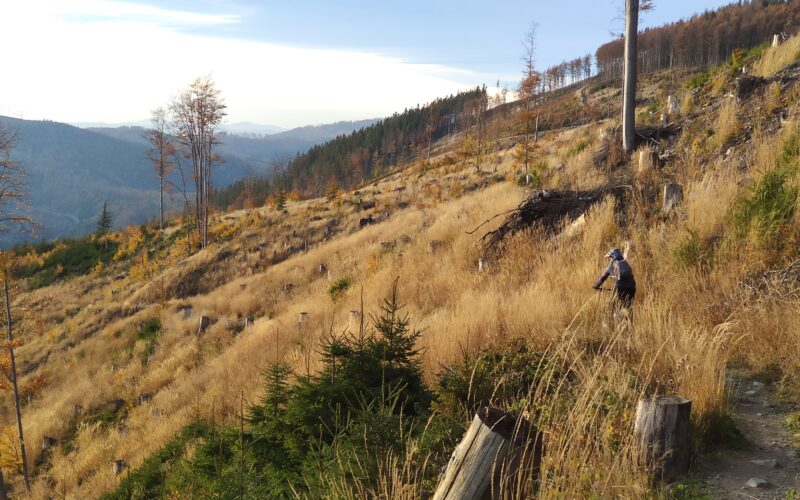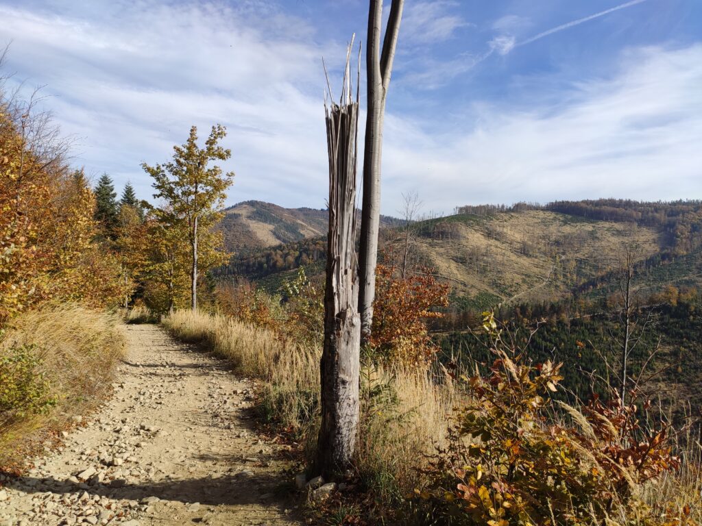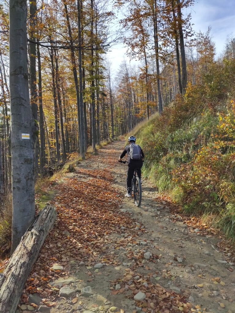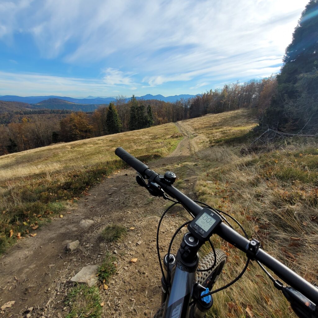 W tym wpisie chciałbym Wam przedstawić najfajniejszą górską pętlę rowerową, jaką udało mi się pokonać w roku 2021. Trasę, o której mowa, pokonałem pod koniec sezonu razem z moim rowerowym kompanem na szlaku Michałem – pozdrawiam Michał! Myślę, że pokonanie szlaku jesienią, miało wymierny wpływ na zajęcie miejsca w mojej pamięci. Dlaczego? Otóż jesień to pora roku, która rozpieszcza barwami. Liście drzew mienią się w złocistych kolorach, łany dzikich traw posiadają swój magiczny klimat, a do tego jesienne słońce, które kumuluje ostatki ciepłych promieni. Jeżeli tak jak ja, lubicie te klimaty, to zapraszam do pokonania przedstawionej trasy właśnie w czasie złotej jesieni. Natomiast do tych z Was, których magia barw tak nie kręci powiem jedno – nie ważne jaką porą roku pokonacie te szlaki, widoki zagwarantują waszym oczom pożądaną rozrywkę!