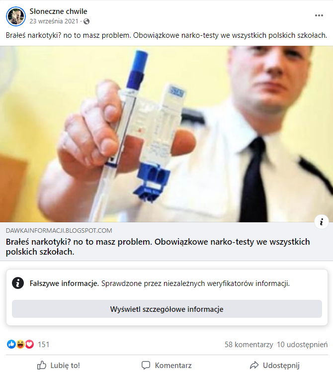 Jeżeli napotkasz na taki rodzaj wpisu – niech zapali Ci się w głowie czerwona lampka. Nie podawaj innym dalej tej informacji “na ślepo”. Poświęć chwilę na zweryfikowanie jej źródła i wiarygodności.